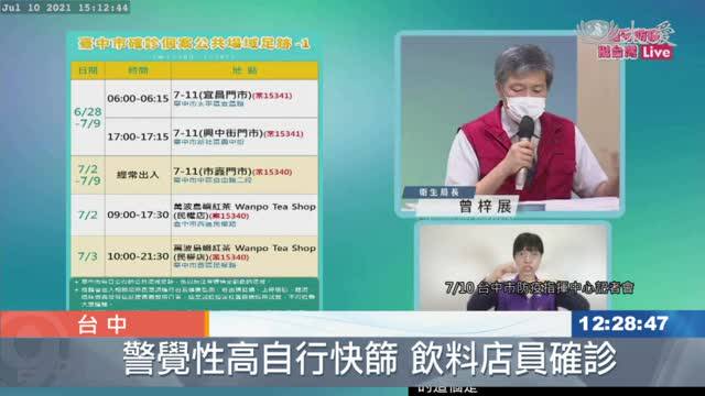 Jun 07, 2021 · 富邦證券宣布,今起19家分公司營業時間縮短至下午2點。(彭博) 〔記者巫其倫/台北報導〕因應疫情變化,富邦證券今天表示,調整雙北、基隆、桃園、台中、苗栗、彰化及花蓮等縣市分公司對外營業時間缩短至下午2點止。 Jun 12, 2021 · 台中新光三越百貨一名櫃姐確診,市府勒令新光三越中港店停業清消,也成立快篩站,召回一兩百位專櫃店員回來快篩,根據了解這名櫃姐在6月初回. Jun 25, 2021 · 愛買表示,27日起「泰博福爾威創家用新型冠狀病毒抗原快速檢驗套組」將在中部以北10家附設藥妝門市陸續上架,一盒5入,售價為新台幣1530元,採. Jun 02, 2021 · 中央疫情指揮中心今(2日)公布新增確診372本土案案,另有177例校正回歸,新增12人死亡。其中台中市新增3例確診個案,相較於上週七日,確診數降至.